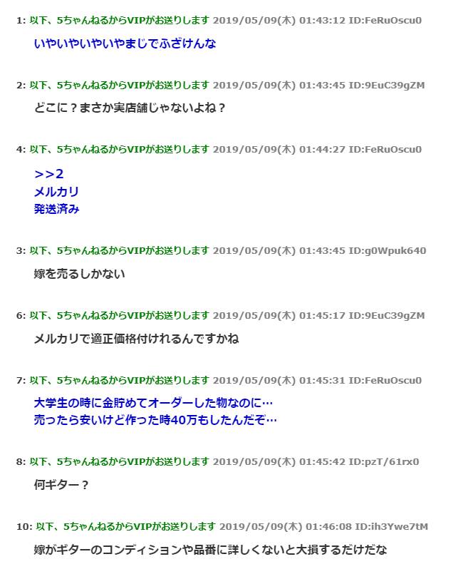 大学の時に買ったギターが消えた!嫁『メルカリに売ったよ。もう発送済み』俺「はぁ!?40万もしたんだぞ…」嫁『えっ、そんなに高いとは思わなかった』