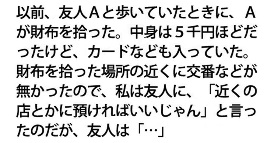 財布を拾った友人は「交番に届けた方が確実」と言う。しぶしぶそれにつきあった・・・