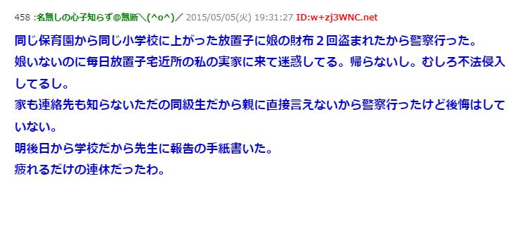 娘の同級生の放置子に不法侵入され、娘の財布2回盗まれた。家も連絡先も知らないただの同級生だから警察行ったが…結果www