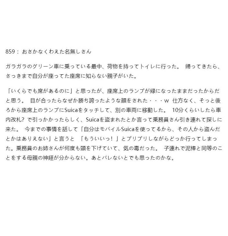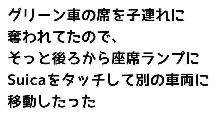 グリーン車の席を子連れに奪われてたので、 そっと後ろから座席ランプにSuicaをタッチして別の車両に移動したった
