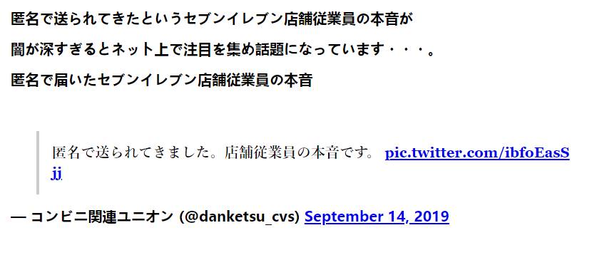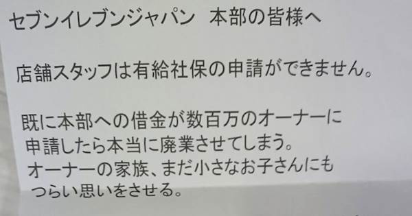 匿名で届いたセブンイレブン店舗従業員の本音…闇が深い…