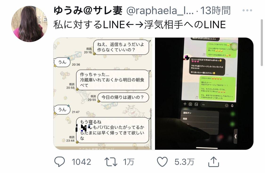 夫と浮気相手とのLINEのやり取りをツイートしたところ、心強い