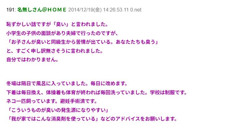 小学生の子供の面談に夫婦で行った。先生「お子さんが臭いと同級生から苦情が出ている。あなたたちも臭う」私夫婦「え…」→自分では分からないんだが…