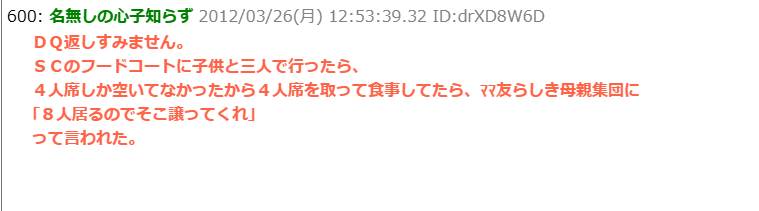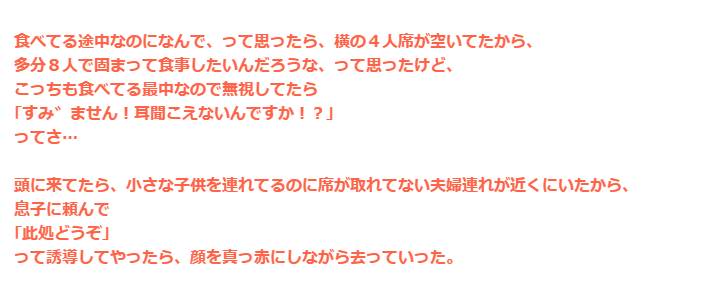 フードコートで。ママ集団「8人いるのでそこ譲って」私(まだ食べてるのに‥)ママ集団「すみません!耳聞こえないんですか!?」→頭にきて‥
